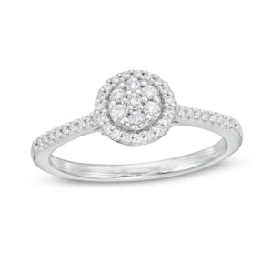 A gorgeous symbol of your love, this sparkling bridal set from features an engagement ring with a romantic heart-shaped diamond haloed by glimmering round diamonds. The band and matching wedding ring are adorned with twists of round diamonds, bringing the total weight of the set to 7/8 carat. The ring is styled in 14K white gold.